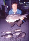 遠賀郡の松本さんは尾長グロ60.2cm 3.4kgを釣り上げました。釣エサはオキアミです。この他に1k~1.8kgの地グロ50枚という大爆釣です!