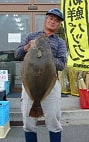 屋沖にて、八幡西区の山下さんはアジゴをエサに、ヒラメ 88.0cm 6.89kgを見事釣り上げました!